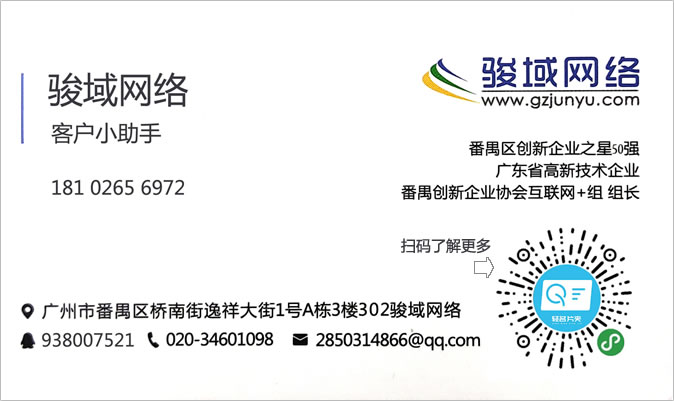 廣州駿域網(wǎng)絡(luò)科技有限公司成立于2005年,是一支由眾多具有多年實踐經(jīng)驗的專業(yè)人士組成的高新技術(shù)團隊,專為企業(yè)提供網(wǎng)站建設(shè)、全網(wǎng)營銷、郵箱等服務(wù),我們擁有嚴(yán)謹?shù)某绦蜷_發(fā)人員、專業(yè)的美工設(shè)計、隨時為您效勞的售后服務(wù)人員,團隊人數(shù)達一百多人。目前我們已經(jīng)榮幸的為廣州眾多知名企業(yè)提供了包括網(wǎng)站建設(shè)、手機網(wǎng)站、小程序、企業(yè)軟件開發(fā)等多種基于互聯(lián)網(wǎng)技術(shù)的服務(wù)。 通過長期積累,駿域網(wǎng)絡(luò)目前已經(jīng)擁有50000多家客戶。